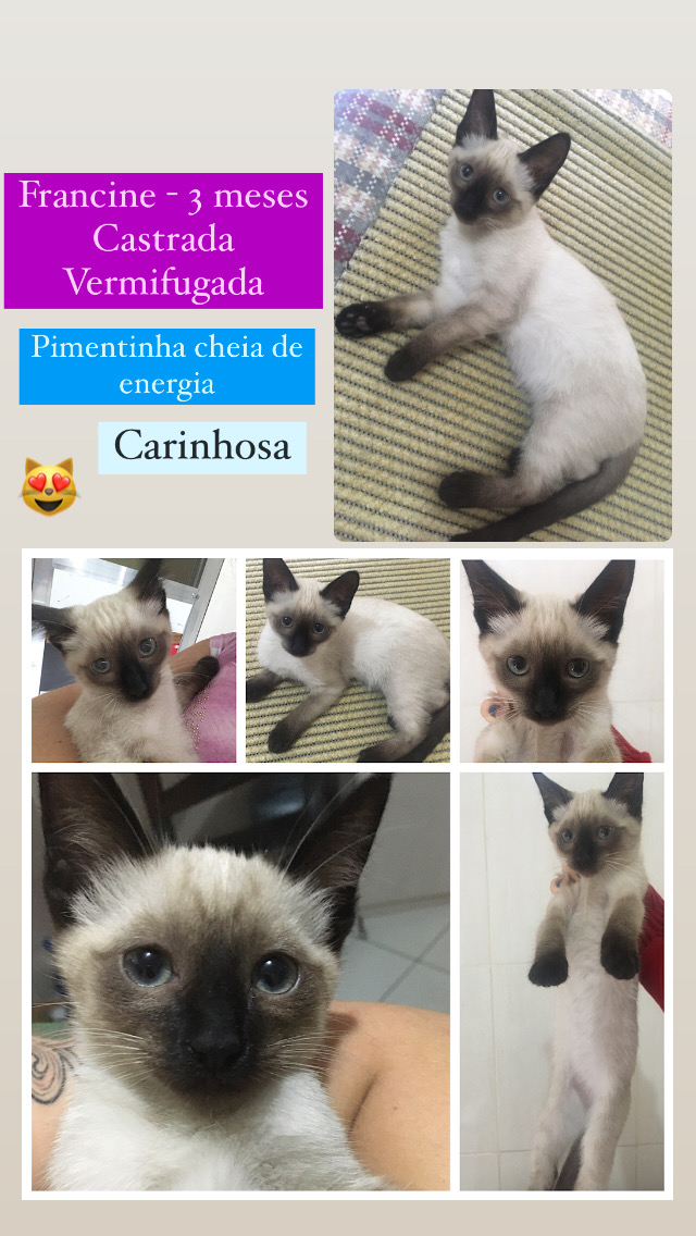 Francine, 3 meses, castrada e vermifugada